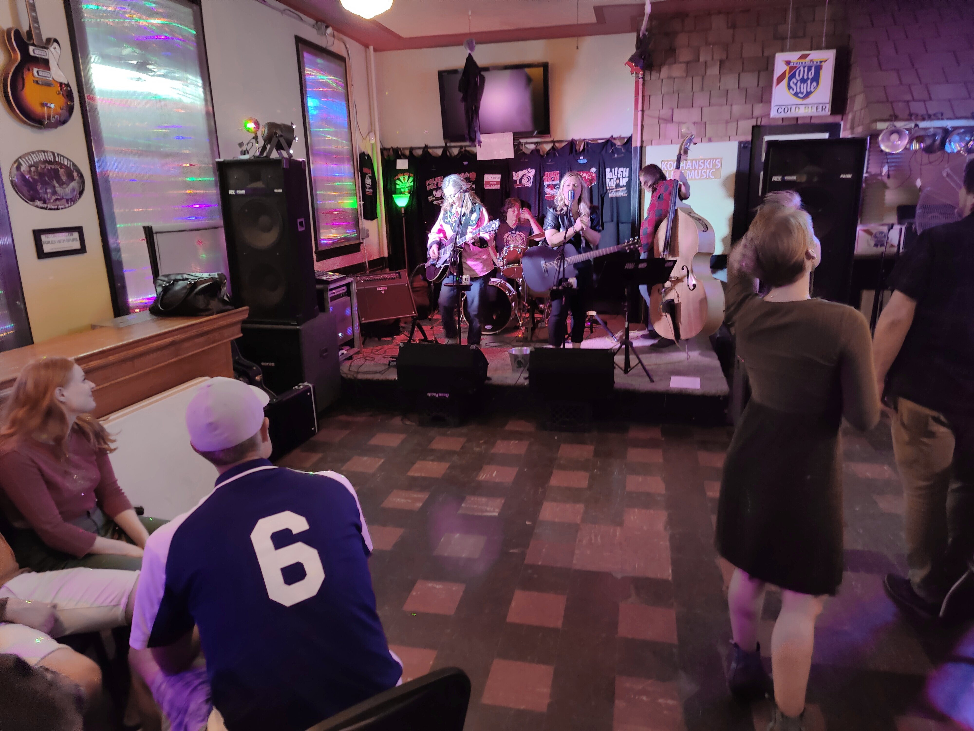 The band plays on an elevated stage overlooking 200 square feet of dance space. Schotskis regularly hosts karaoke, Taco Tuesday, various bands, and Packer games. All this fun comes with a bit of a price to the dancer. The beautiful wood floor is a bit sticky. On the night this review was made, the stickiness was noticeable for the first hour only as the dance shoes scuffed it clean.