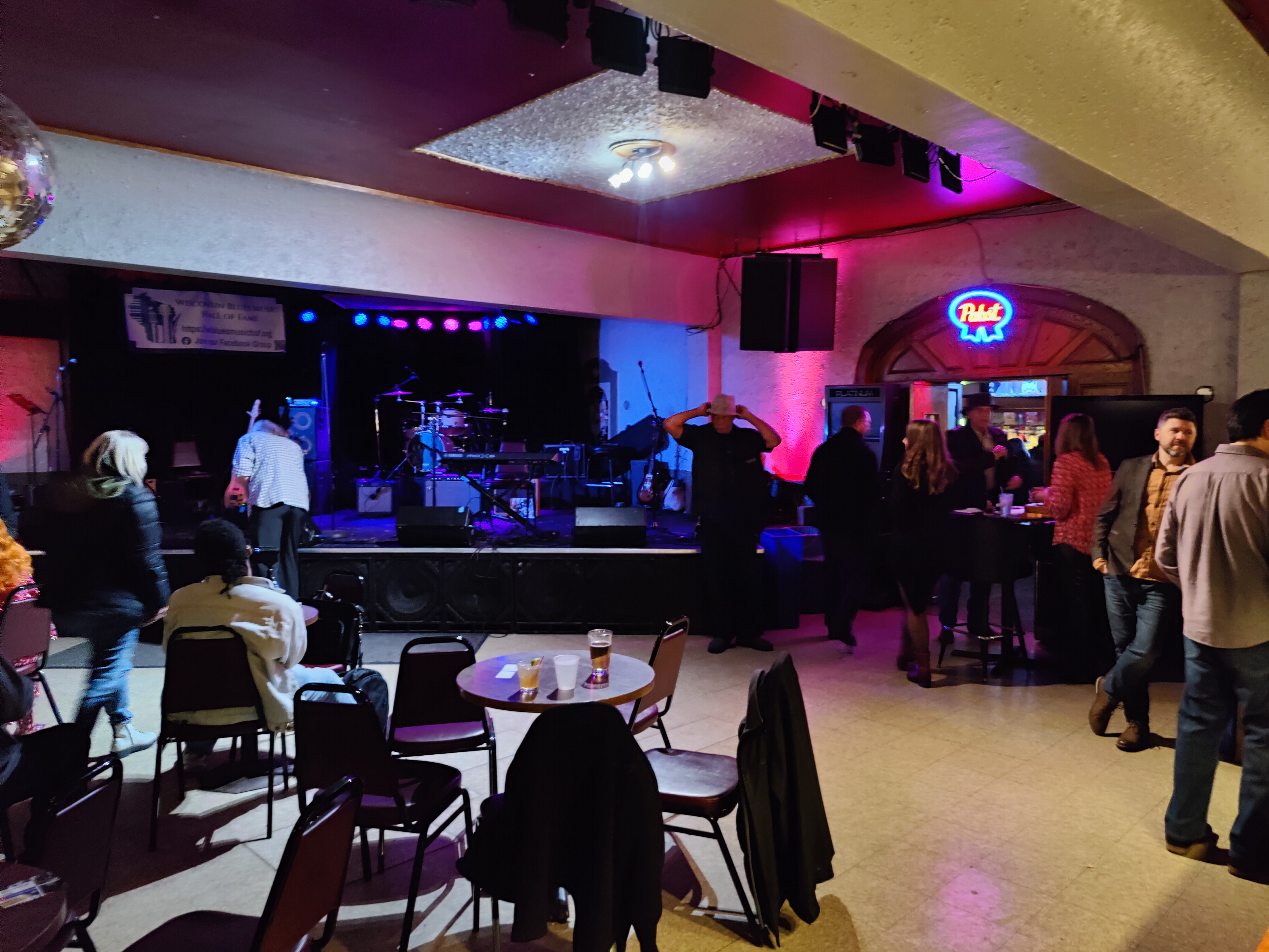 This venue is a modest-sized bar area that opens into a roughly 1,000 sq ft dance hall with stage. The wood floor is always clean and provides a very nice danceable surface. The full bar also has a variety of food options. In all, this venue is very dance friendly and and our dance community has used this venue to comfortably host dances with up to 80 people.